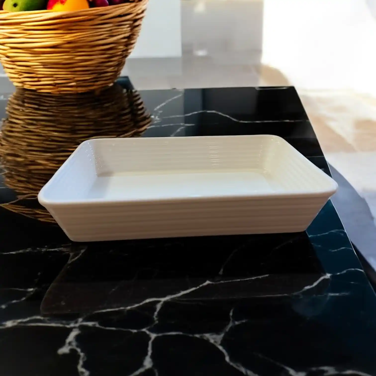 Cook like a pro with our oven-safe rectangular casserole dish. Ideal for baking lasagnas, roasting veggies, or slow-cooked stews. Stylish in this white shade, it’s made to impress every guest. This is where functionality meets timeless design.